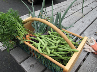 With Hurrican Irene bearing down on the East Coast this weekend, we chose Friday to haul in some of the veggies that were ready to be harvested. We had a good start to some carrots and now know that we can let them stay in a little longer barring any other natural disasters.